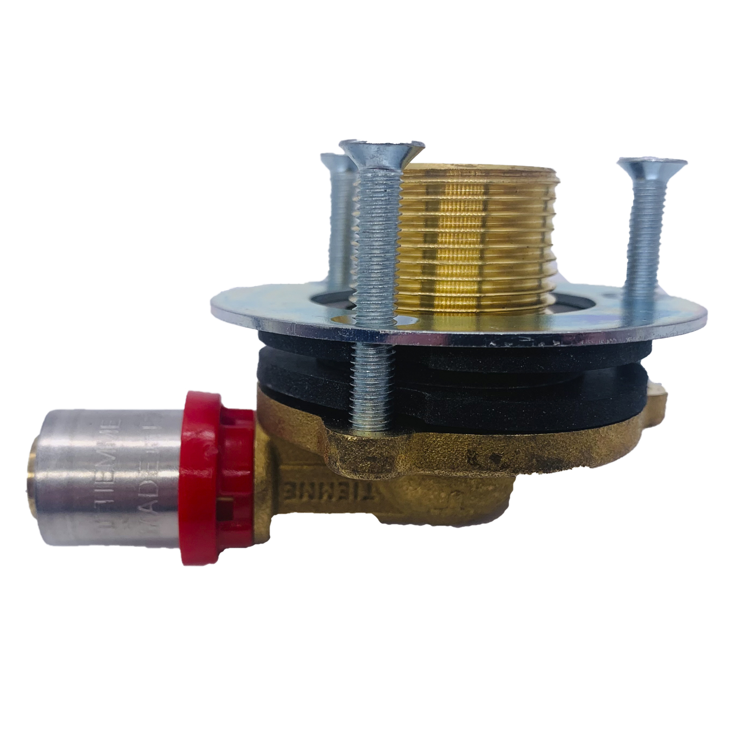 Водорозетка Tiemme 16*1/2" латунь (для гипсокартона, пресс, L=28 мм.) (1651062 / 1662CG) / Локоть ниппель со проходное фланец, для стен из гипсокартона (Art. 1662CG)