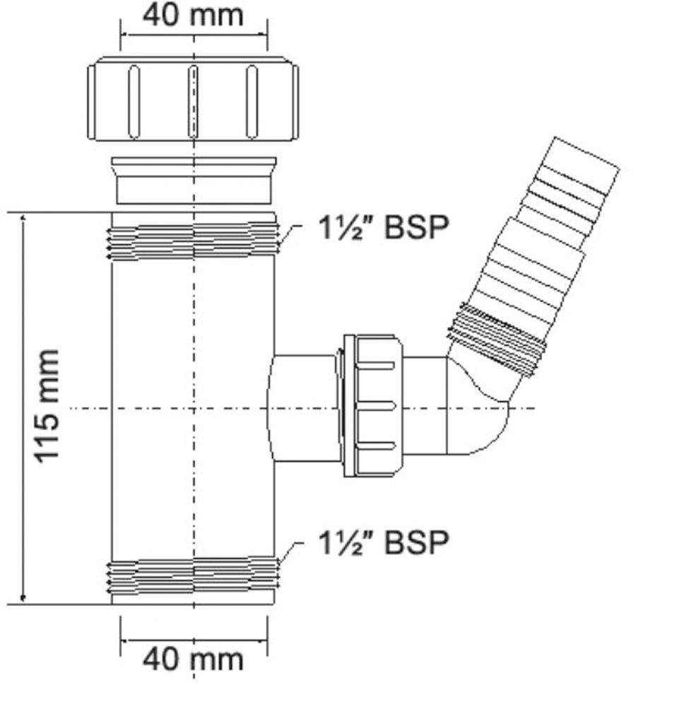 Вставка для подкл. быт. техники McAlpine 40 мм х 1 1/2"Н (40EWM)