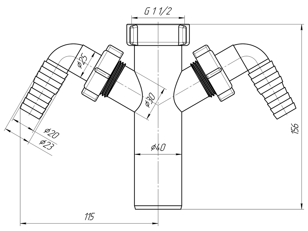 Вставка для подключения бытовой техники 1 1/2"*40 АНИ с 2-мя отводами АНИ пласт (M145)