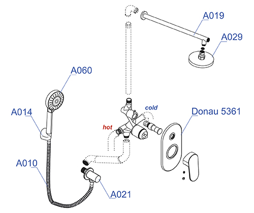 А14029 Встраиваемый комплект для душа с верхней душевой насадкой и лейкой