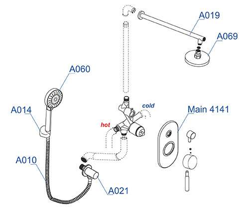 A16169 Встраиваемый комплект для душа с верхней душевой насадкой и лейкой