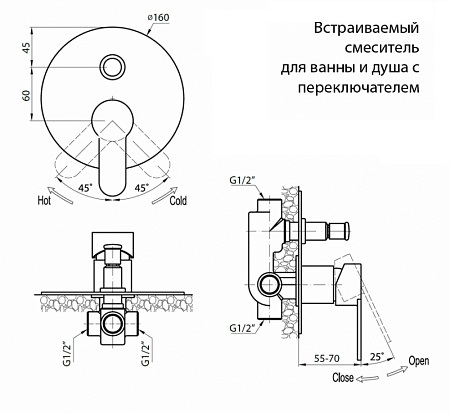 Тип подводки: внутренний (скрытый) монтаж 1/2