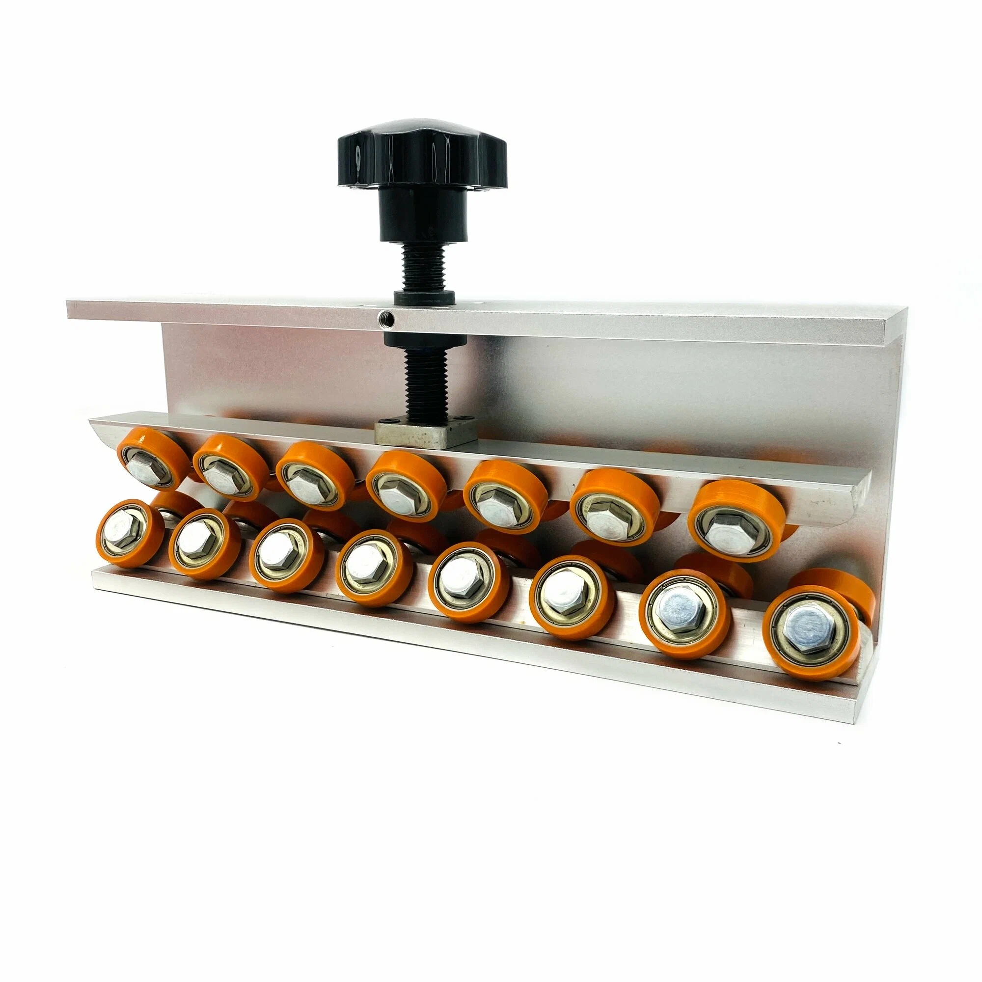 Отрегулируйте высоту подвижной прижимной планки таким образом чтобы труба могла быть вставлена в прижимные колеса.