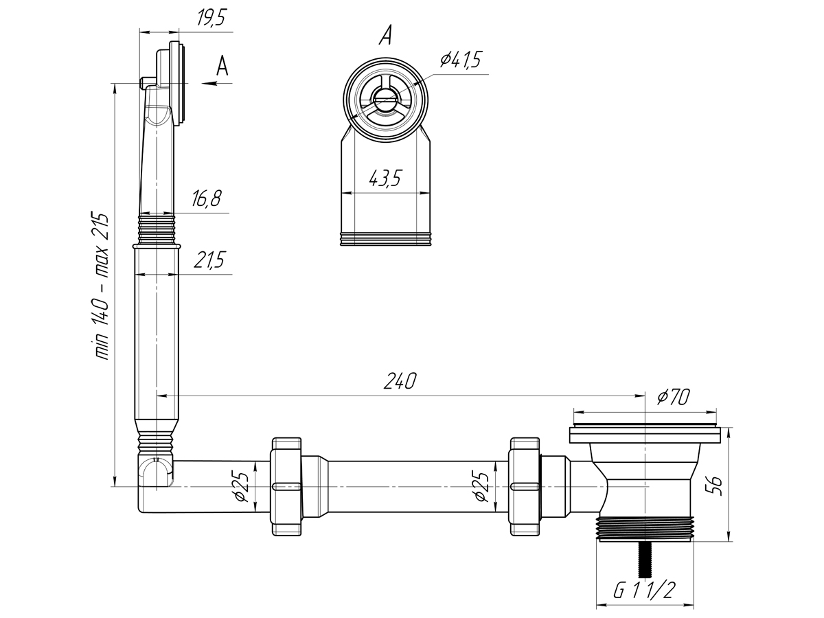 Выпуск для мойки 1 1/2"*70 АНИ с круглым жестким переливом (нержавеющая решетка) АНИ пласт (N120)