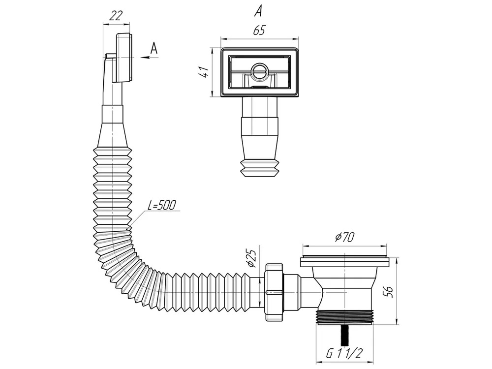 Выпуск для кухонной мойки АНИ пласт N105S с нержавеющей решеткой 70 мм и гибким прямоугольным переливом. Корпус перелива оборудован универсальной прокладкой для круглых и прямоугольных моек из нержавеющей стали со сливным отверстием 50-60 мм