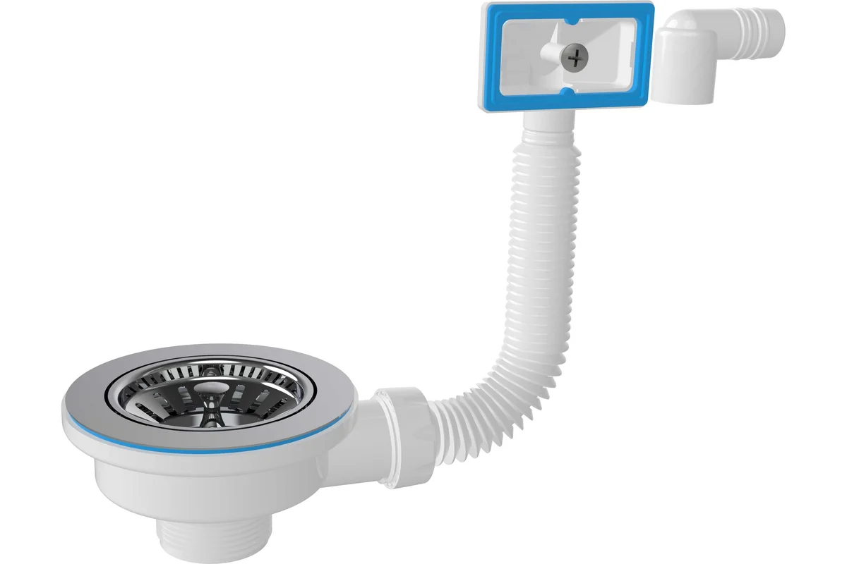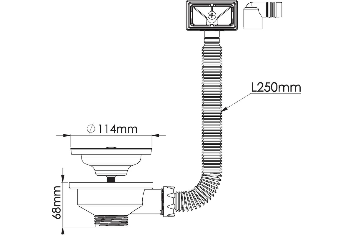 Выпуск для мойки 1 1/2"х114 (3 1/2") Nova с прямоугольным гибким переливом (сетка из нерж.ст) (1039)