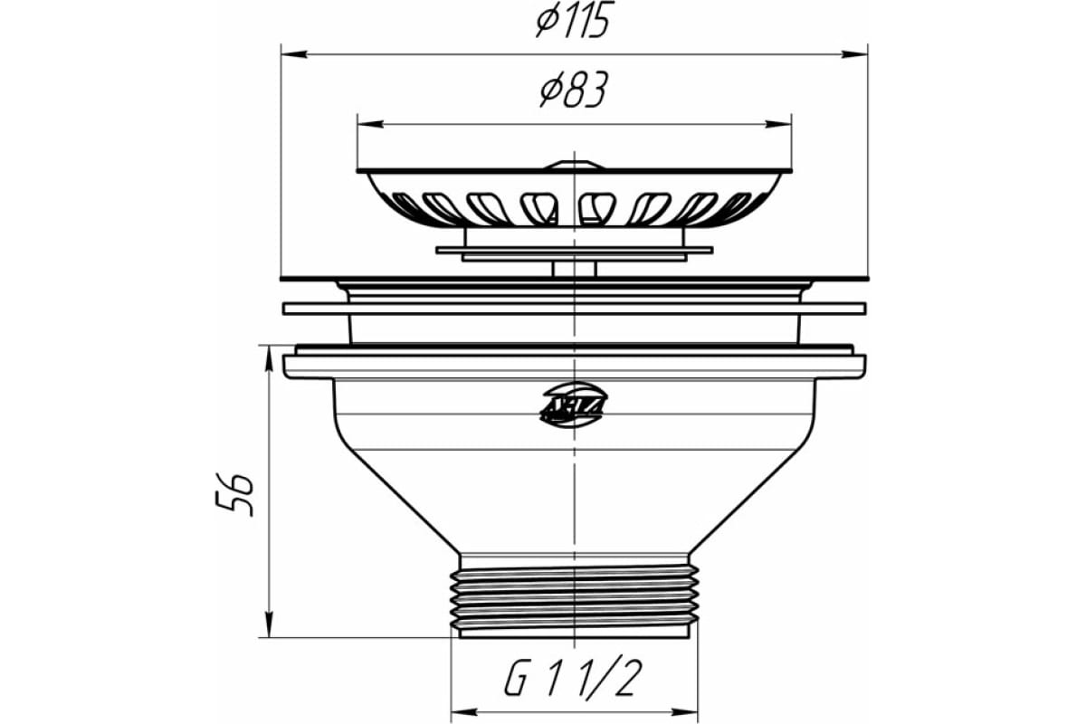 Выпуск АНИ Пласт 3 1/2" M250 подходит для сифона кухонных моек. Сетка сливного отверстия служит пробкой