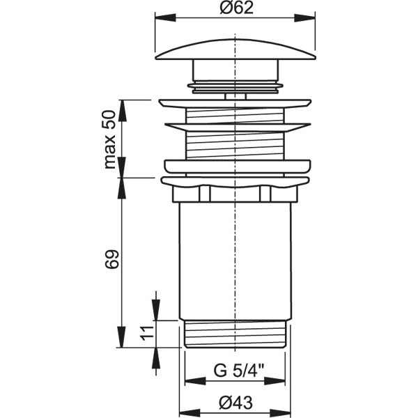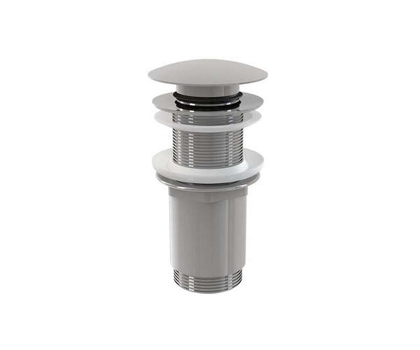 Водослив для раковины хромированный, цельнометаллический, с большой заглушкой без перелива. Диаметр резьбы для подключения сифона – 5/4”.