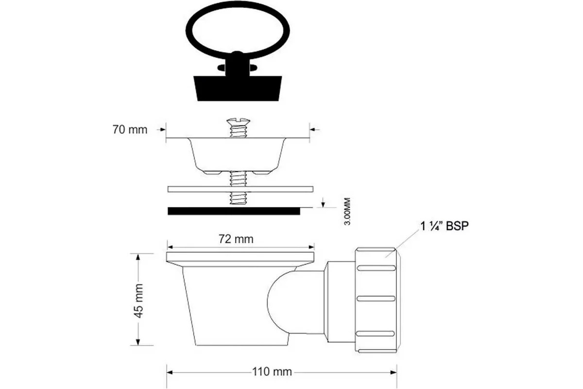 Выпуск для раковины McAlpine угловой 70 мм решетка нерж., пробка, выход 1 1/4" (MRWW2E)