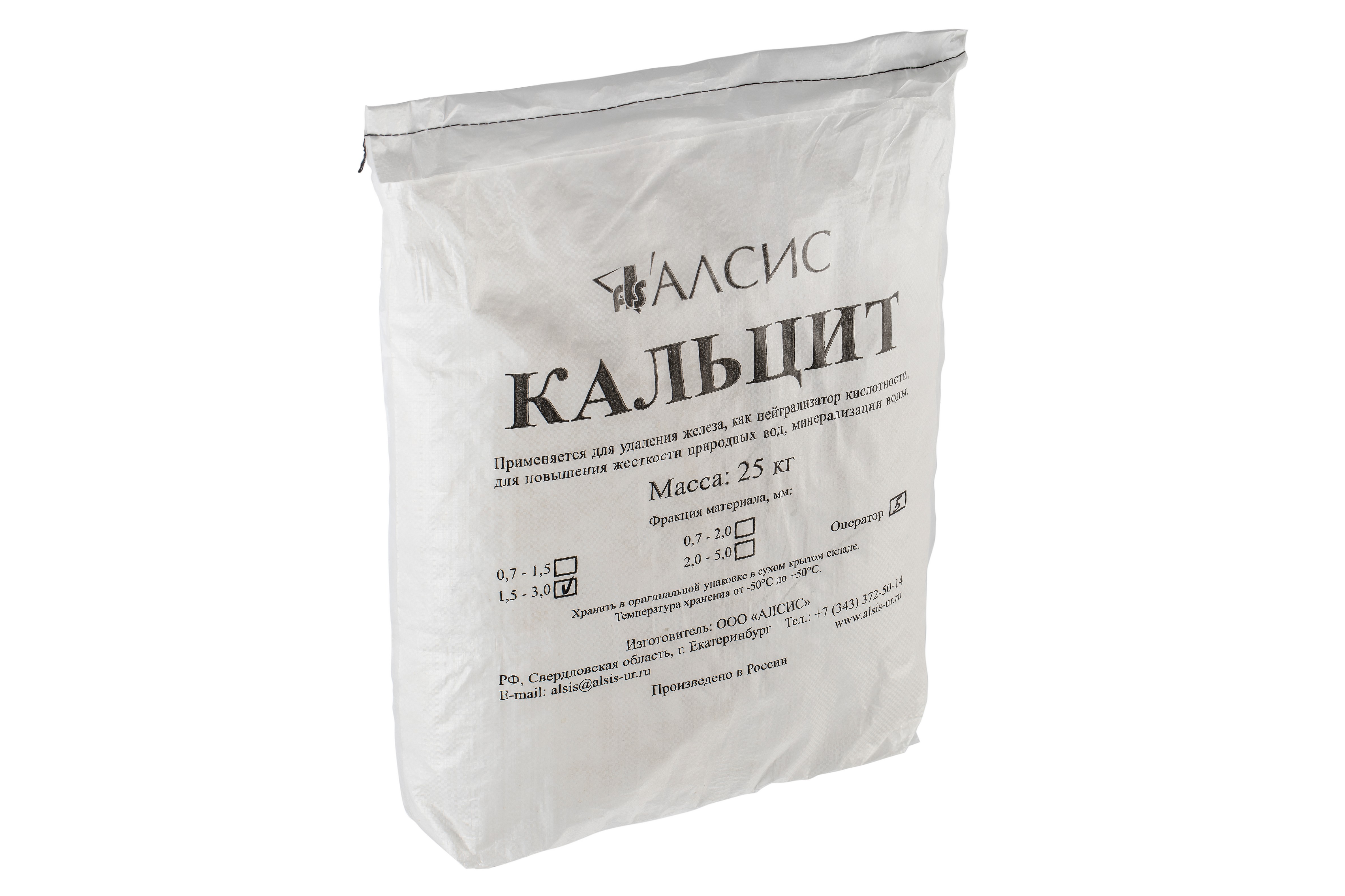Карбонат кальция естественного происхождения. Чаще всего используется для регулирования уровня рН воды в системах обезжелезивания. Во время контакта с кальцитом кислые воды медленно растворяют карбонат кальция, повышая уровень рН. При применении кальцита жесткость увеличивается. Также может использоваться для минерализации воды.