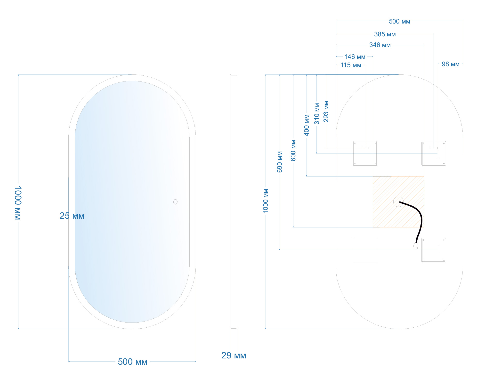 Зеркало Abber Kontur 100x50 с подсветкой, сенсорный выключатель, диммер (AG6303S-1.0)
