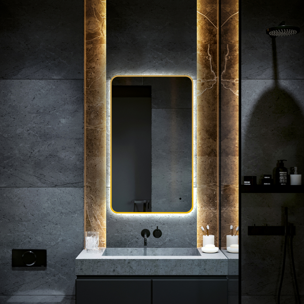 Зеркало Abber See 100x60 с подсветкой, бесконтактный выключатель, диммер, золото (AG6112SCG)