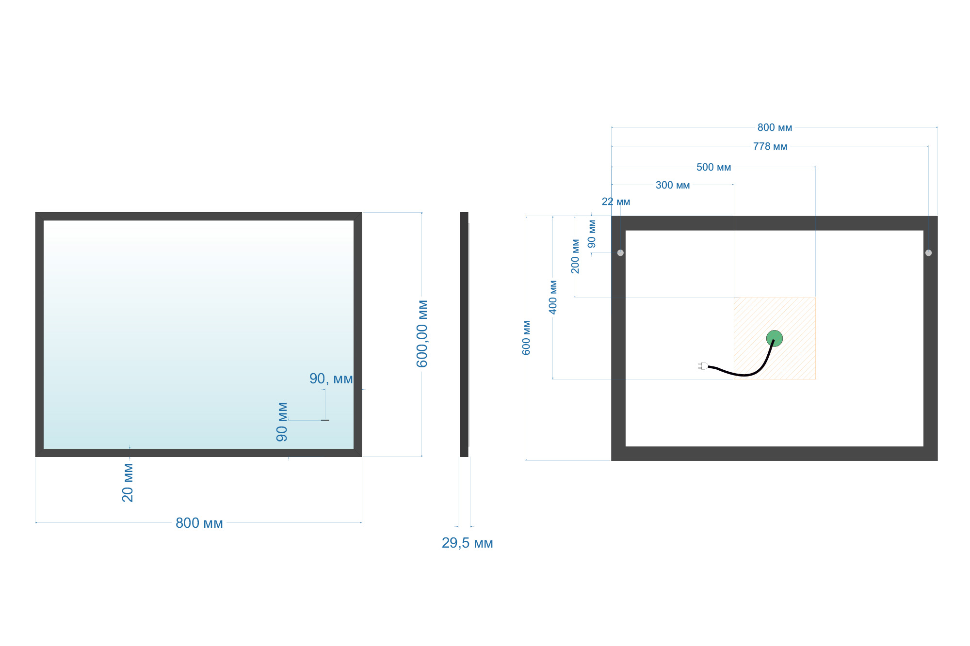 Зеркало Abber See 60x80 с подсветкой, бесконтактный выключатель, диммер, черный (AG6110SCL-0.8)