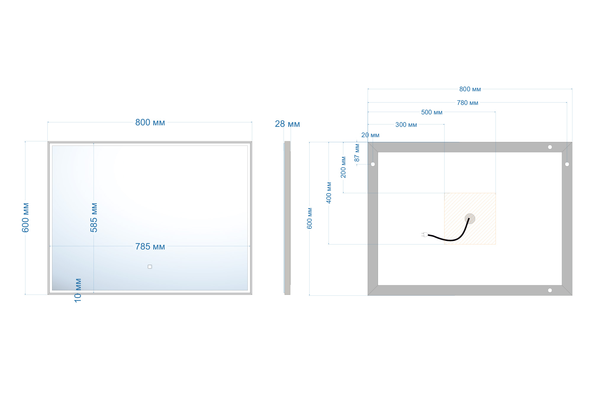 Зеркало Abber See 60x80 с подсветкой, сенсорный выключатель, диммер (AG6108SL-0.8)