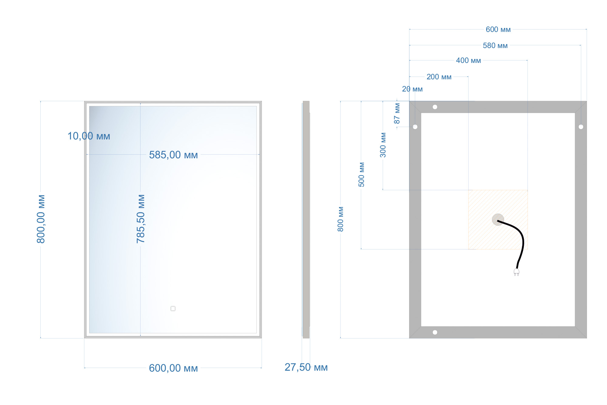 Зеркало Abber See 80x60 с подсветкой, сенсорный выключатель, диммер (AG6108S-0.6)