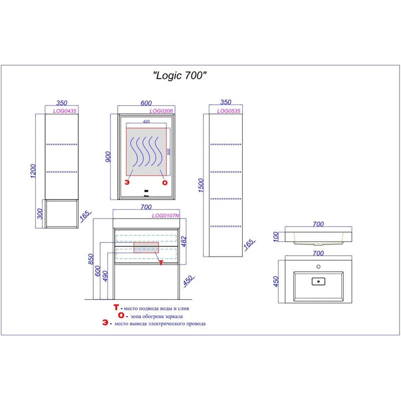 Зеркало Aqwella Logic 600x900x30 черный (LOG0206)