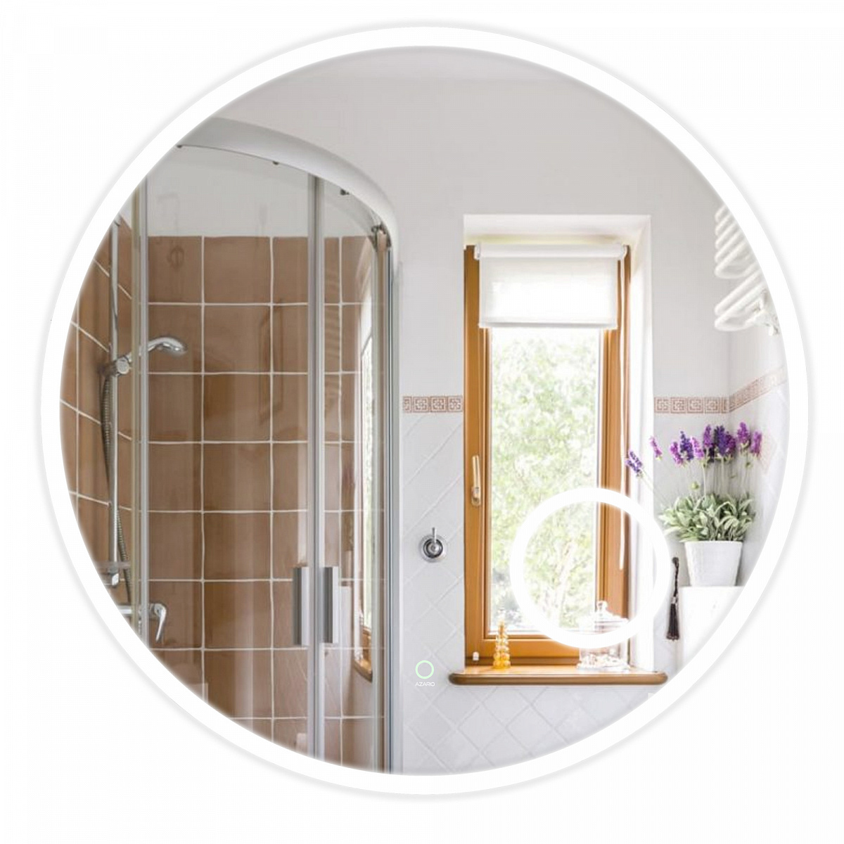 Зеркало AZARIO оснащено LED подсветкой и сенсорным выключателем с функцией плавного диммирования. Короткие касания выключателя меняют яркость свечения. Толщина зеркала 5 мм, что делает его надежным и прочным. Класс защиты IP44- это позволяет использовать электроприбор во влажном помещении.