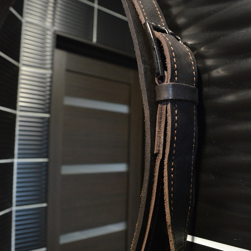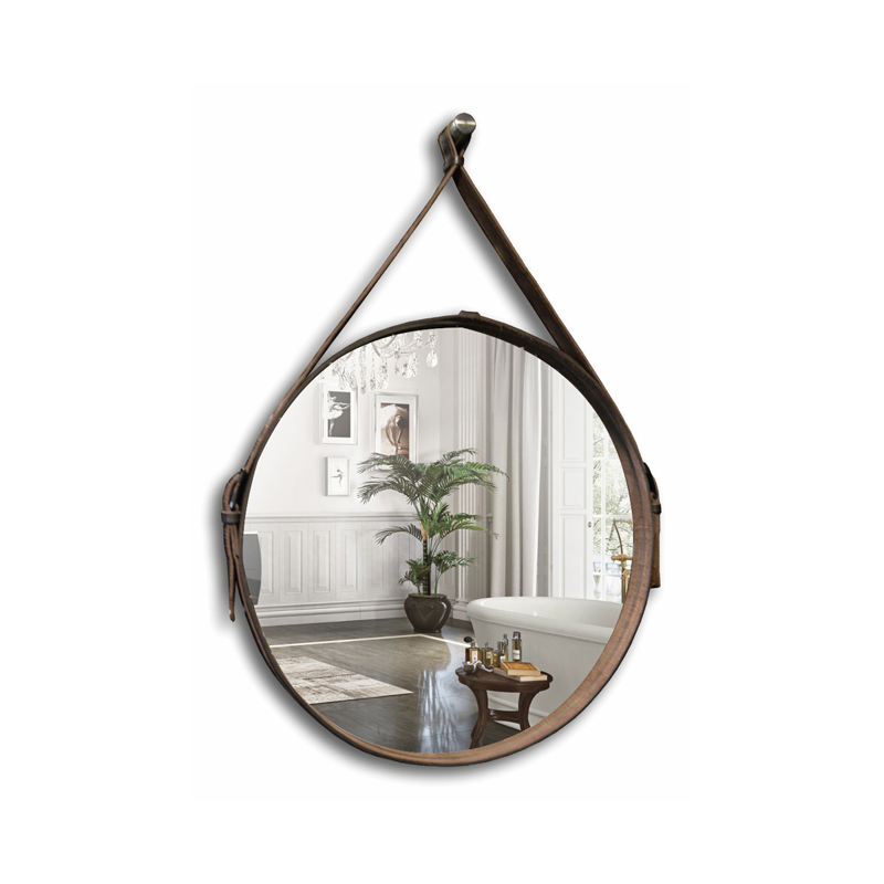 Круглое зеркало на кожаном ремне - яркий и модный акцент в вашем интерьере.