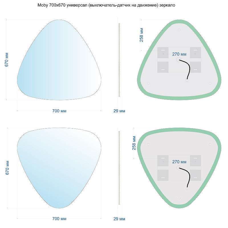 Зеркало Azario Moby 70x67 универсал, выключатель-датчик на движение (LED-00002974)