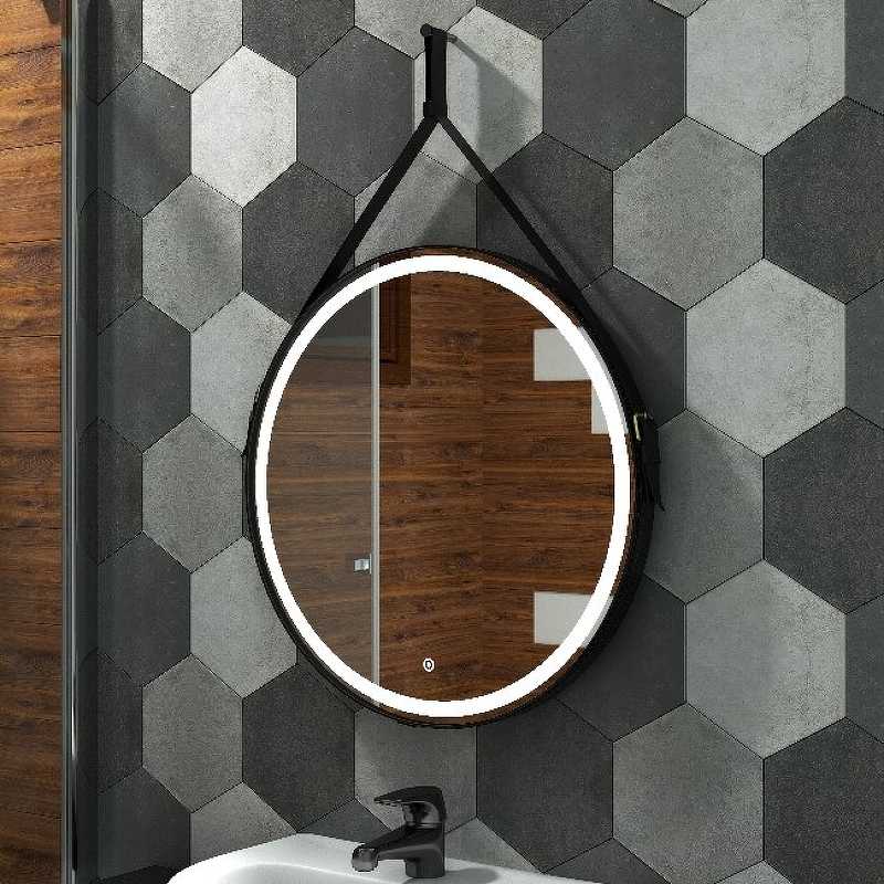 Зеркало Континент Millenium Black Led D 650 на ремне из натуральной кожи черного цвета (ЗЛП969)