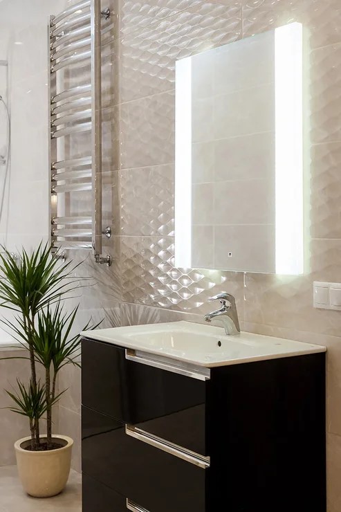 Зеркало для ванной комнаты с LED подсветкой и сенсорным выключателем. Потребляемая мощность 15 W. Класс защиты IP44.