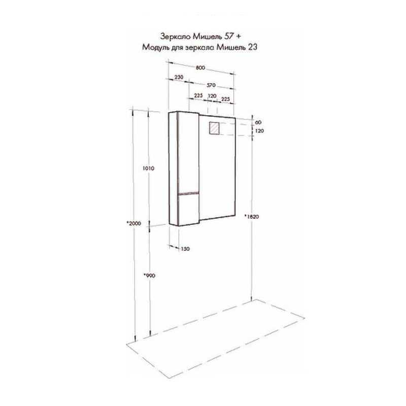 Зеркало Мишель Aquaton 57 с выключателем (1A253902MIX40)