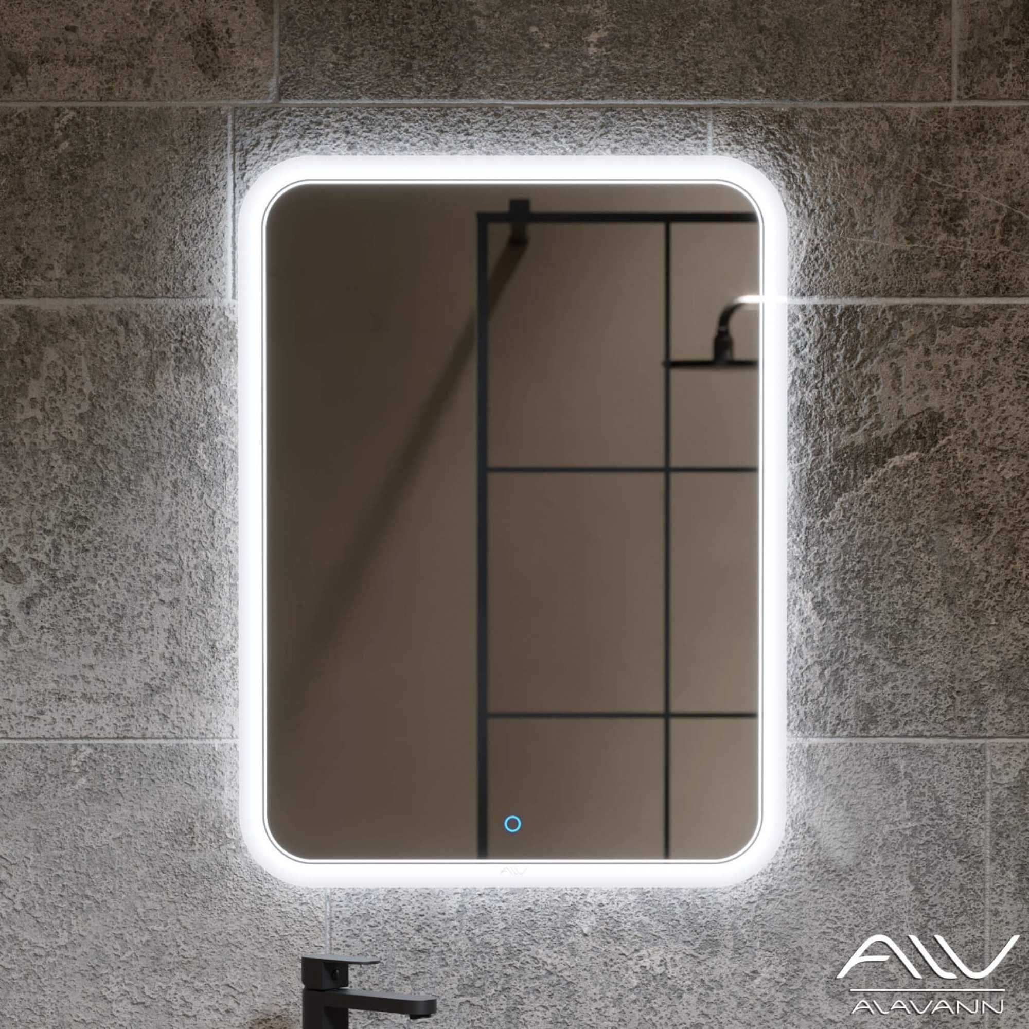 Корпус зеркала оснащен базовым сенсорным выключателем с димированием, при желании может комплектоваться ИК выключателем или кнопкой. Изделие надежно защищено от влаги и брызг, что продлевает срок его эксплуатации.