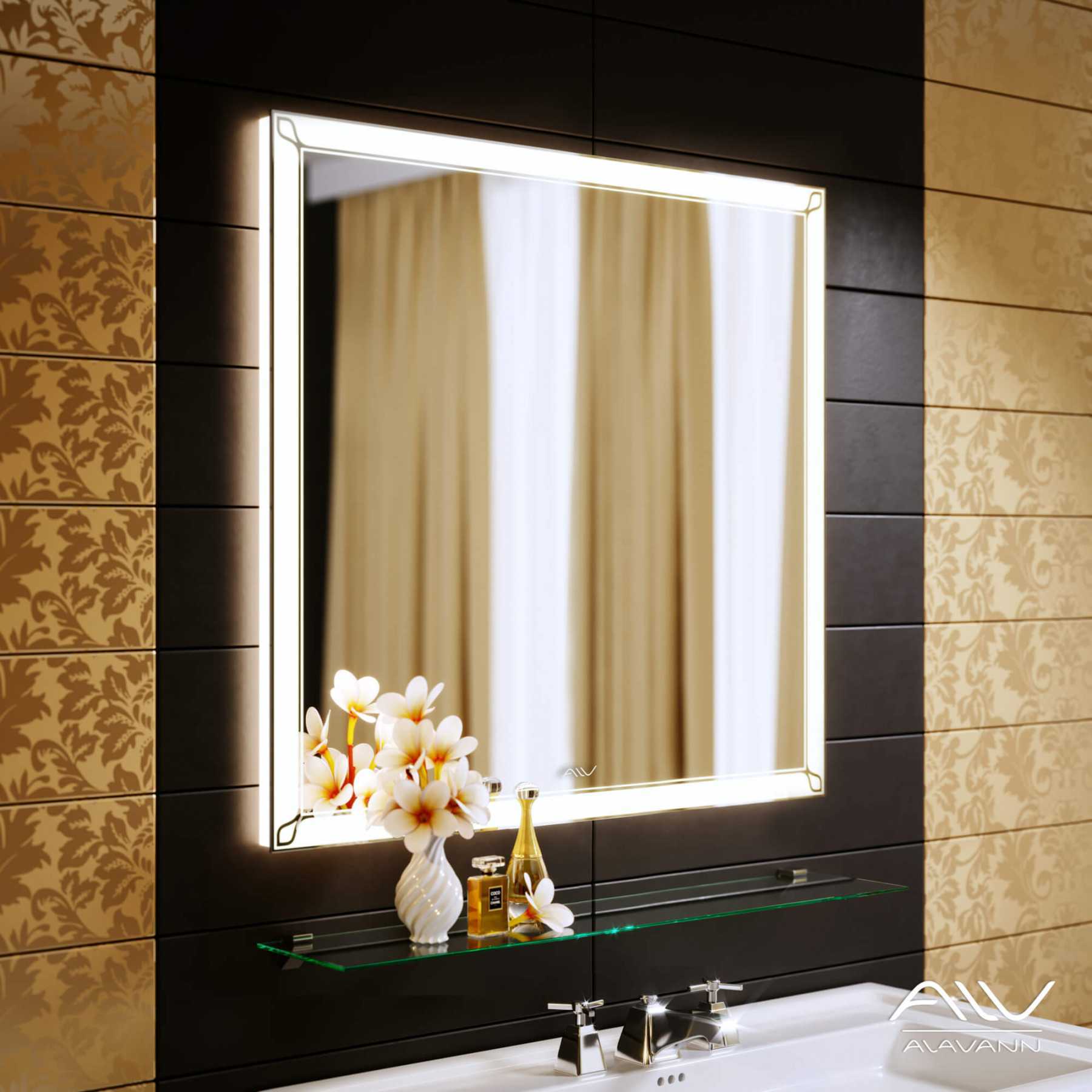 Создается ощущение, будто зеркало парит в воздухе! Благодаря серебряной амальгаме изделие является максимально влагозащищенным, а его изображение отличается идеальным качеством.