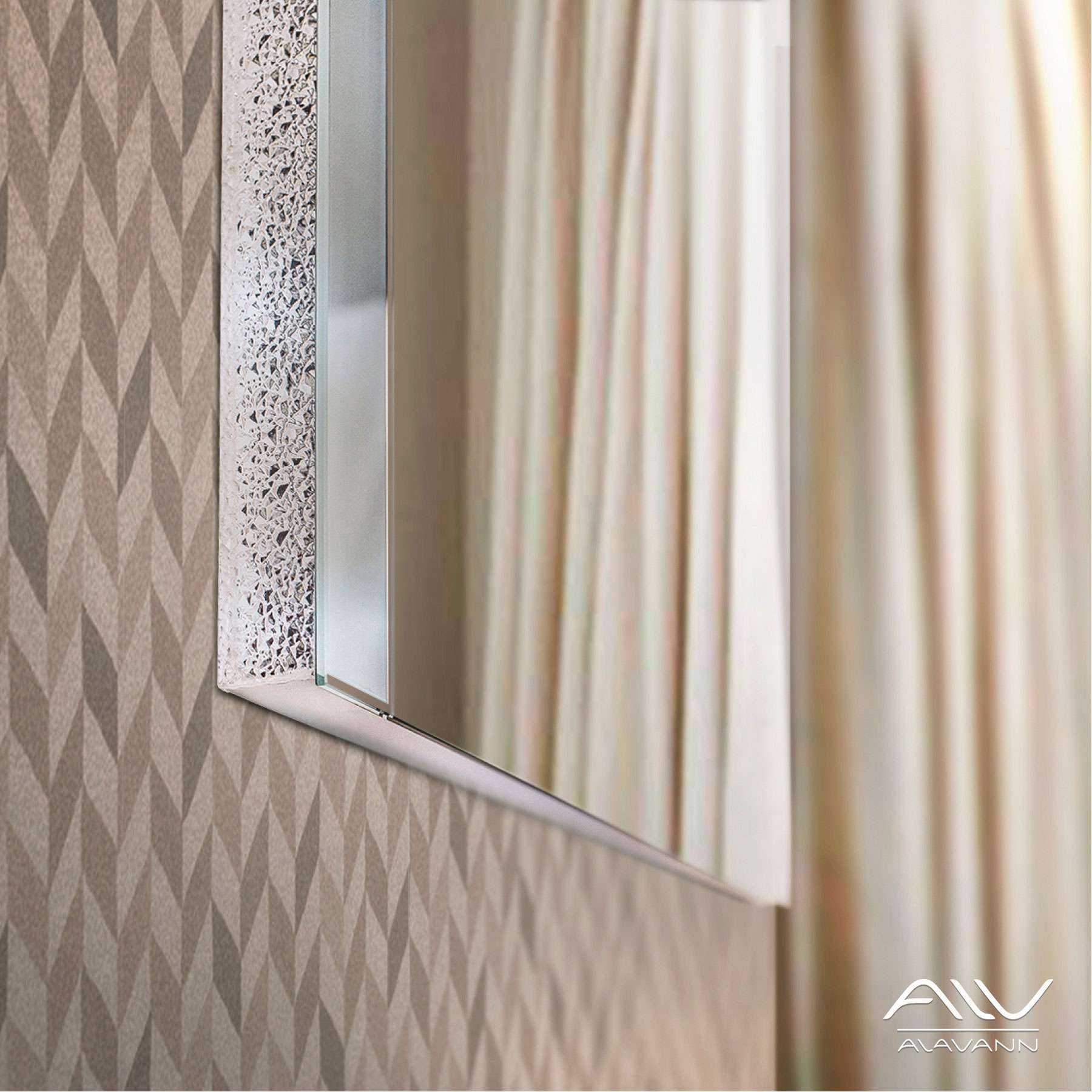 Основное отличие зеркала Тесс - стильный корпус “колотый лед”, созданный из двух типов светопропускающих материалов. Сверху и снизу зеркало обрамляет светопропускающий пластик и уникальный светопреломляющий материал «колотый лед» по бокам.