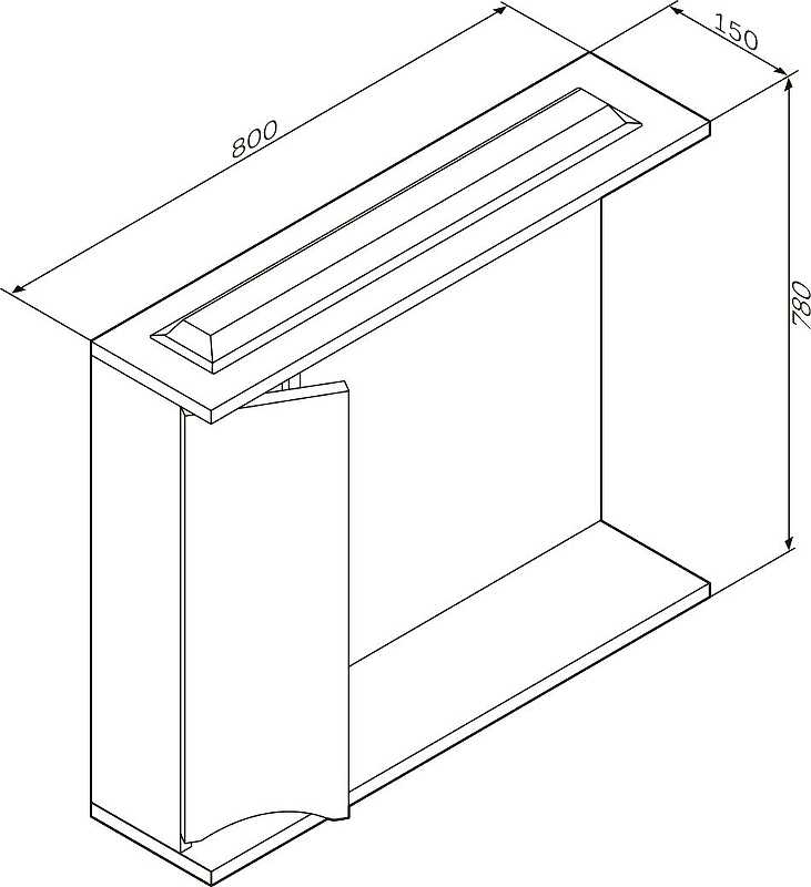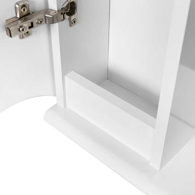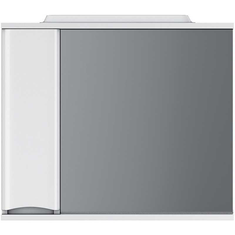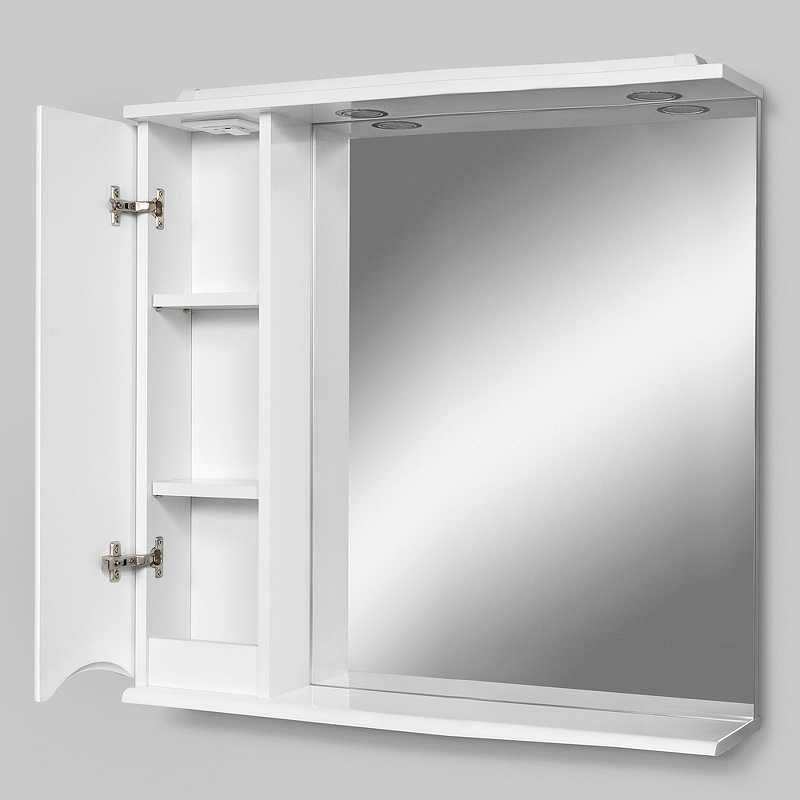 Конструкция: шкаф слева, зеркало справа, открытая полка снизу.