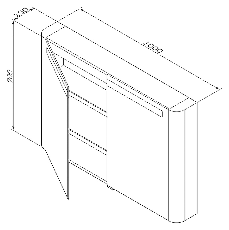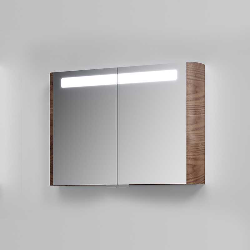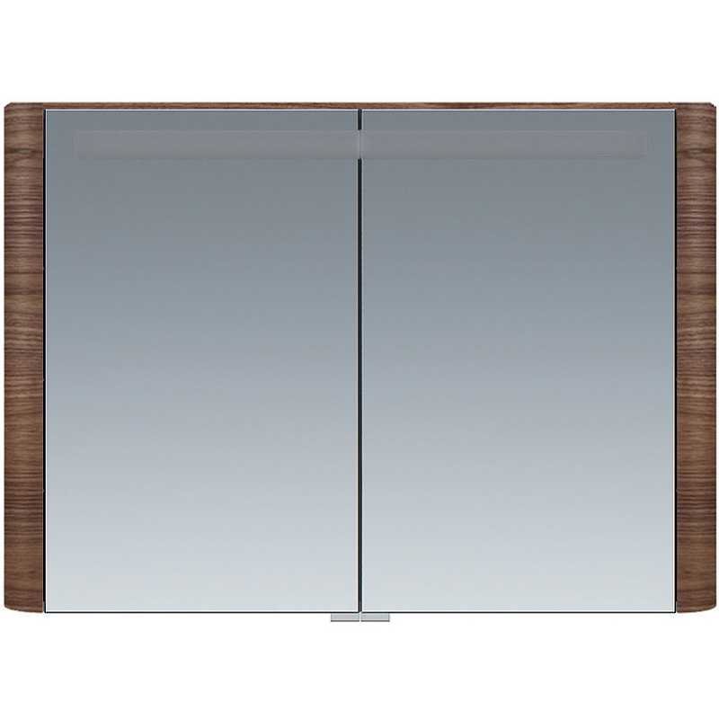 Зеркальный шкаф в ванную AM.PM Sensation 100 M30MCX1001NF с двумя распашными дверцами и двумя полками за ними, с подсветкой сверху, с розеткой и выключателем.