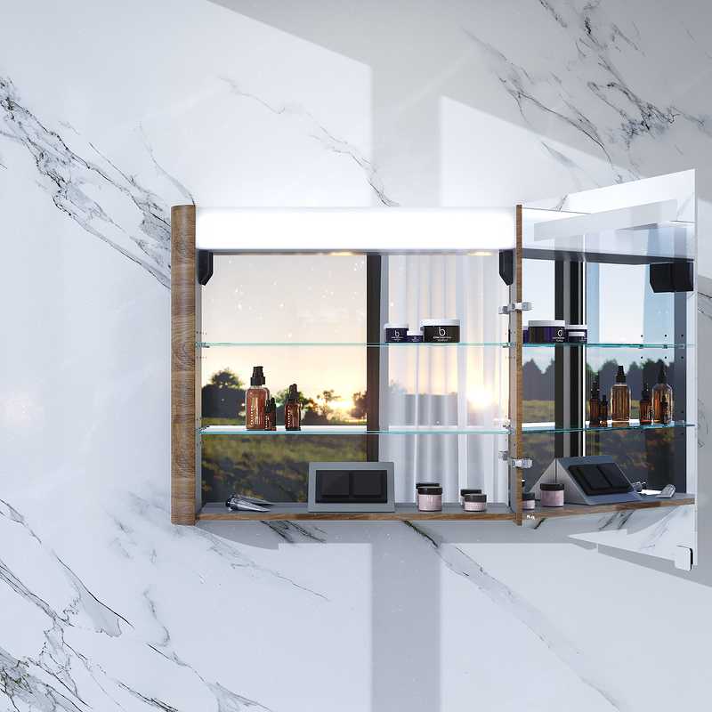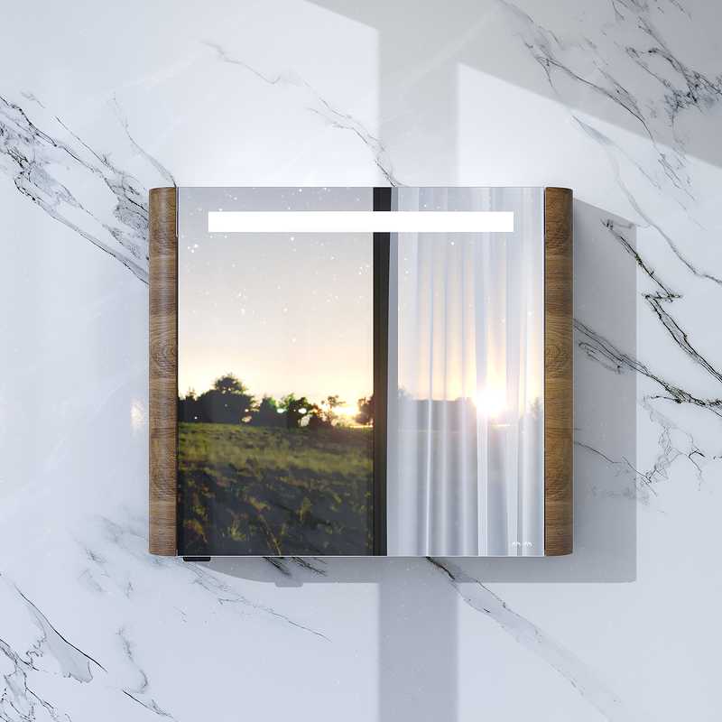Зеркальный шкаф в ванную AM.PM Sensat с подсветкой сверху, с розеткой и выключателем.