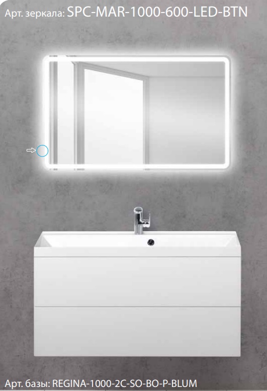 Зеркало с подсветкой BelBagno SPC-MAR 100x60 (SPC-MAR-1000-600-LED-BTN)