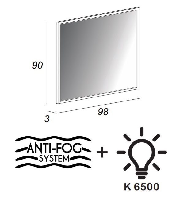 TIFFANY Зеркало со встроенной LED подстветкой, системой Антизапотевания, реверсивное 45046 Bianco opaco, 98х4х90