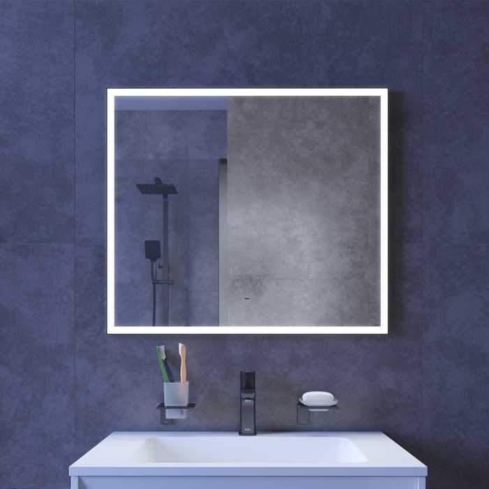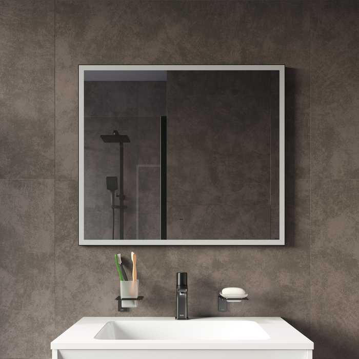 Зеркало 800*700 мм, зеркало с черной рамой из алюминия. Бесконтактный сенсор, с обогревом.