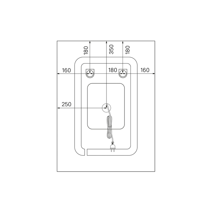 Зеркало 500*700 мм, видимая часть - только зеркальное полотно. Включение подсветки по механическому выключателю. С обогревом. С лого в зоне подсветки. Гарантия 3 года