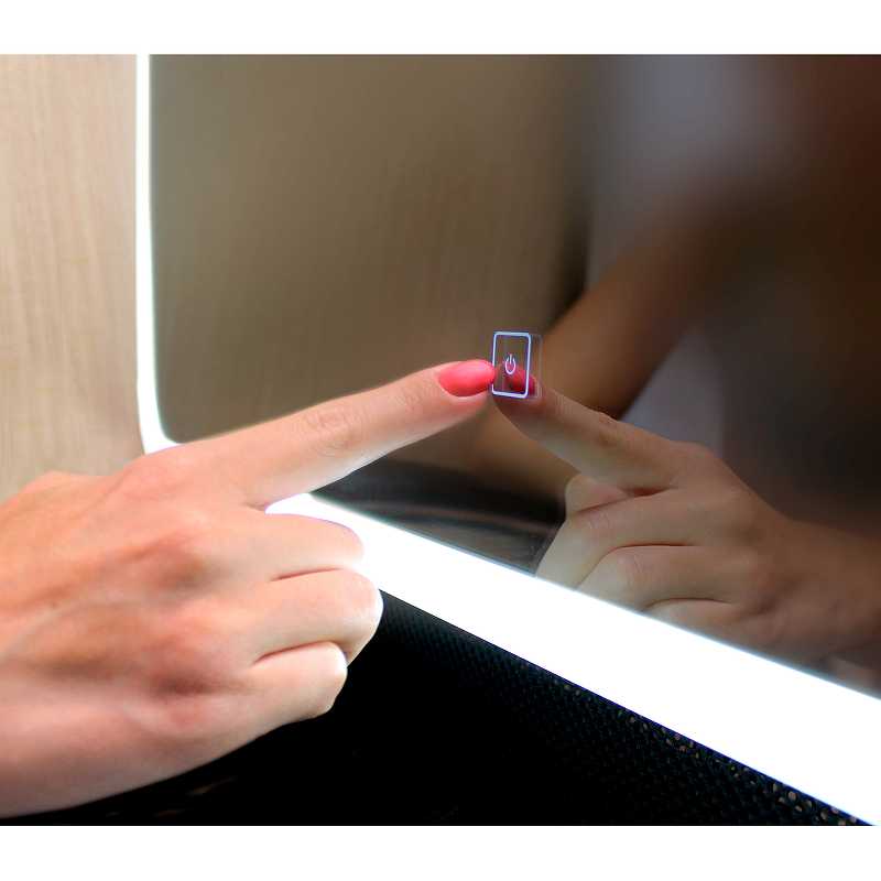 Оснащение: LED-подсветка, сенсорный выключатель, блок питания, крепление зеркала (кронштейн с крюком), клеммник, сетевой шнур.