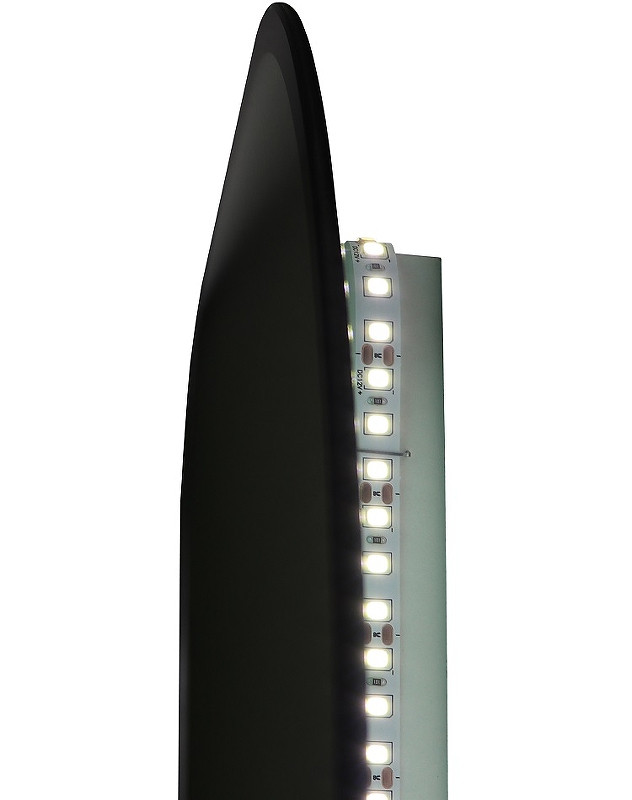 Зеркало оснащено фоновой LED-подсветкой, используется светодиодная лента с плотностью диодов 120 шт./м мощностью 9,6Вт/м, которая обеспечивает изобилие великолепного света.