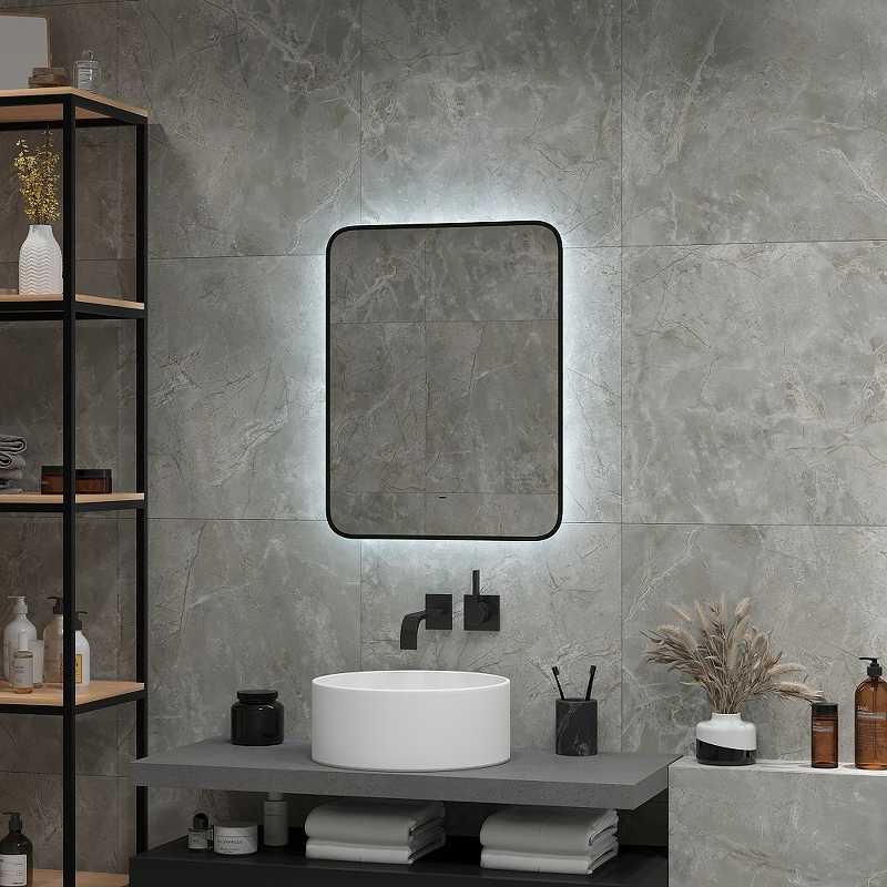 Зеркало с подсветкой Континент Torry Led 600х700 с фоновой подсветкой, бесконтактным сенсором, черной окантовкой (ЗЛП1534)