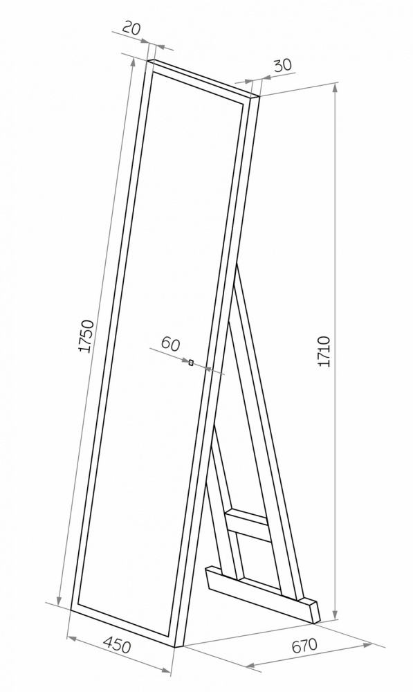 Зеркало с подсветкой Континент Tower Black Led 450х1750 напольное (ЗЛП1095)