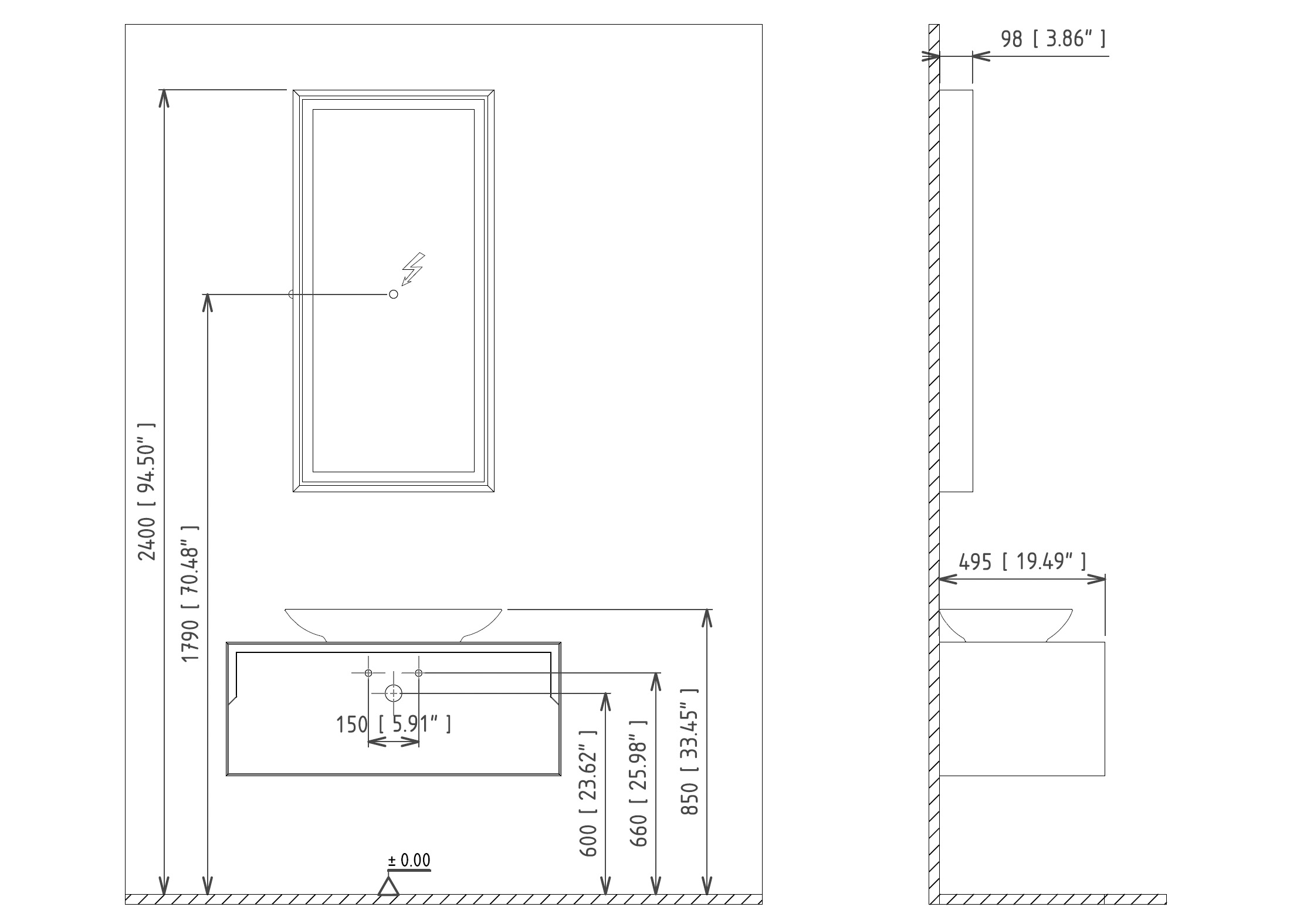 Зеркало с подсветкой Orka Craft 600x900x100 антрацит матовый (3000325)