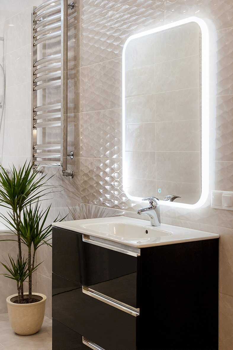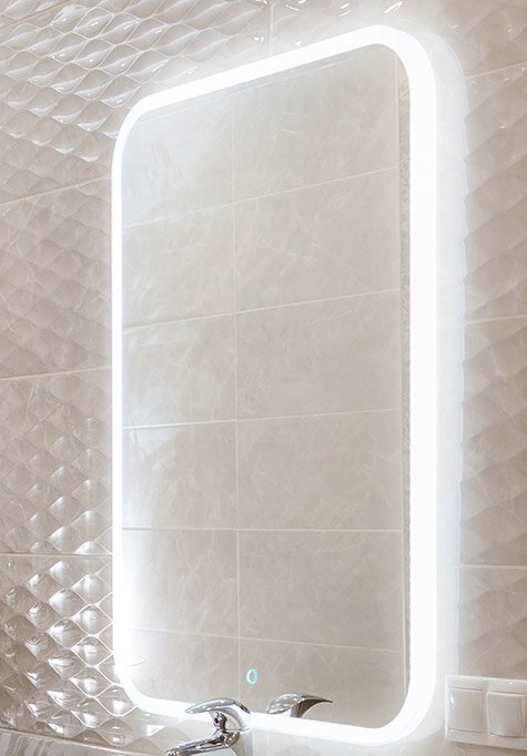 Зеркало со скрытой подсветкой это очень стильно и современно, оно прекрасно выписывается в интерьер любой ванной комнаты. Кроме того, зеркало оснащено сенсорным выключателем освещения. Скрытая подсветка зеркала встроена в непроницаемый короб сзади изделия. Встроенная LED-подсветка выдерживает до 50 тыс. часов работы в непрерывном режиме.