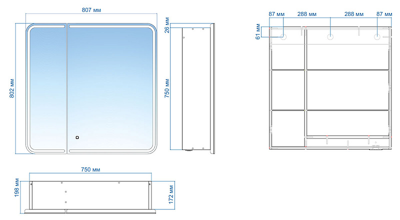Зеркало-шкаф Azario Alliance 80,5х80 Slim сенсорный выключатель (LED-00002516)