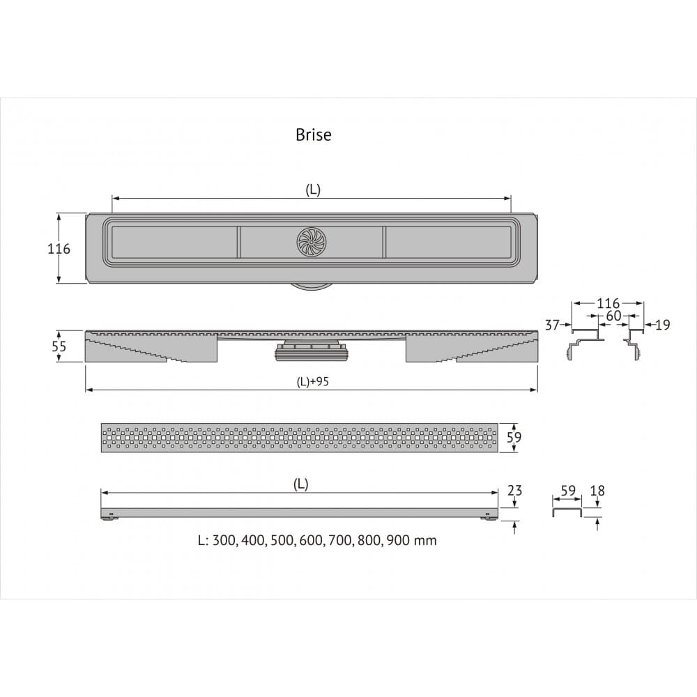 Желоб Berges водосток C1 Brise 500, матовый хром, S-сифон D50/105 H50 вертикальный (090030)