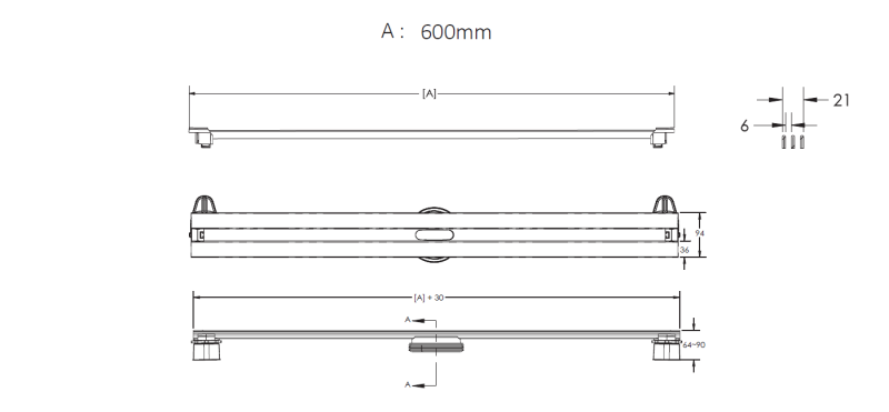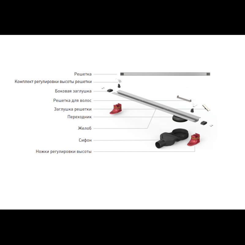 Желоб Berges водосток Super Slim 600, матовый хром, S-сифон D50 H60 боковой (090152)