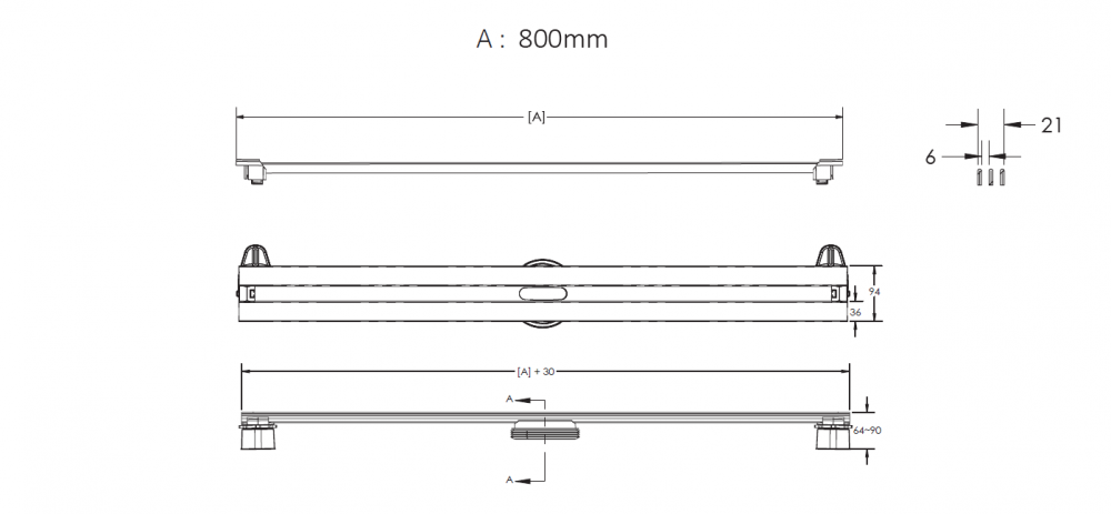 Желоб Berges водосток Super Slim 800, матовый хром, S-сифон D50 H60 боковой (090154)