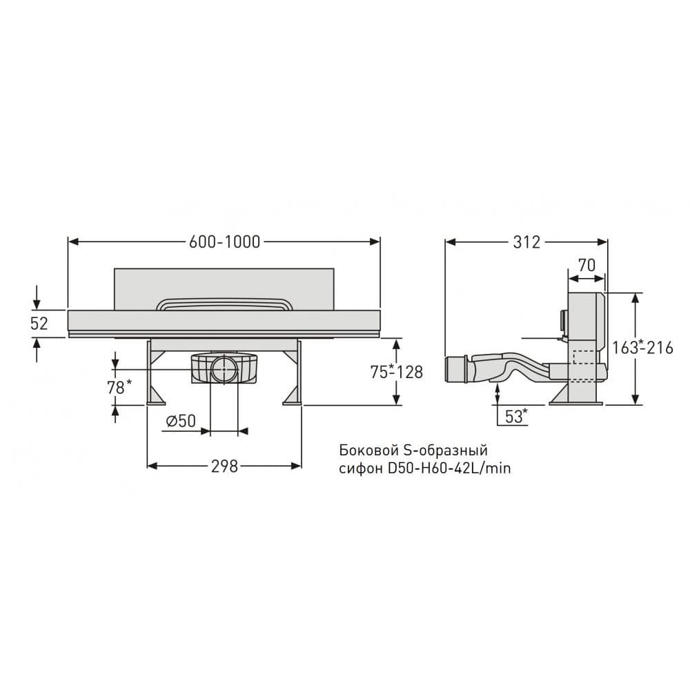 горизонтальный выпуск D50 H60, пропускная способность 42л/мин, монтаж 360°
