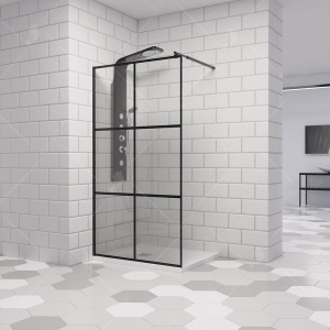 Душевое ограждение Loranto Walk-In 90x200 стекло прозрачное, профиль черный матовый (CS-W04B-90)