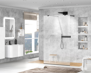 Душевая перегородка Cezares Liberta 25x195 стекло серый, профиль черный (LIBERTA-L-1-25-GR-NERO)