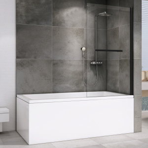 Душевая шторка для ванн Abber Immer Offen 100x140 стекло прозрачное, профиль черный (AG70100B)